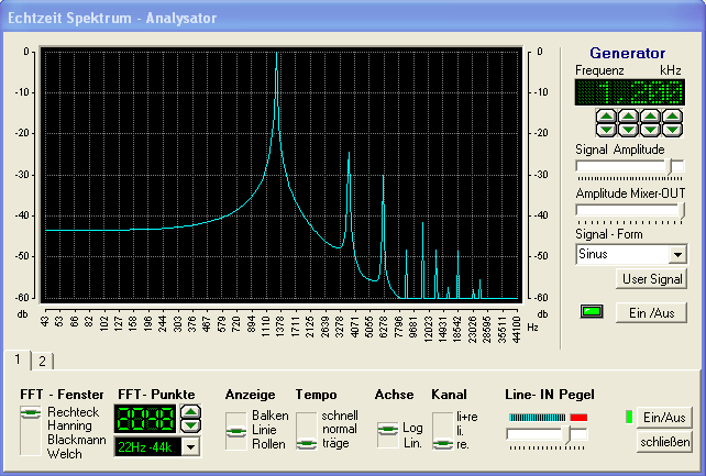 Realtime Analyzer , RTA , mit Funktionsgenerator Abbildg. ähnlich