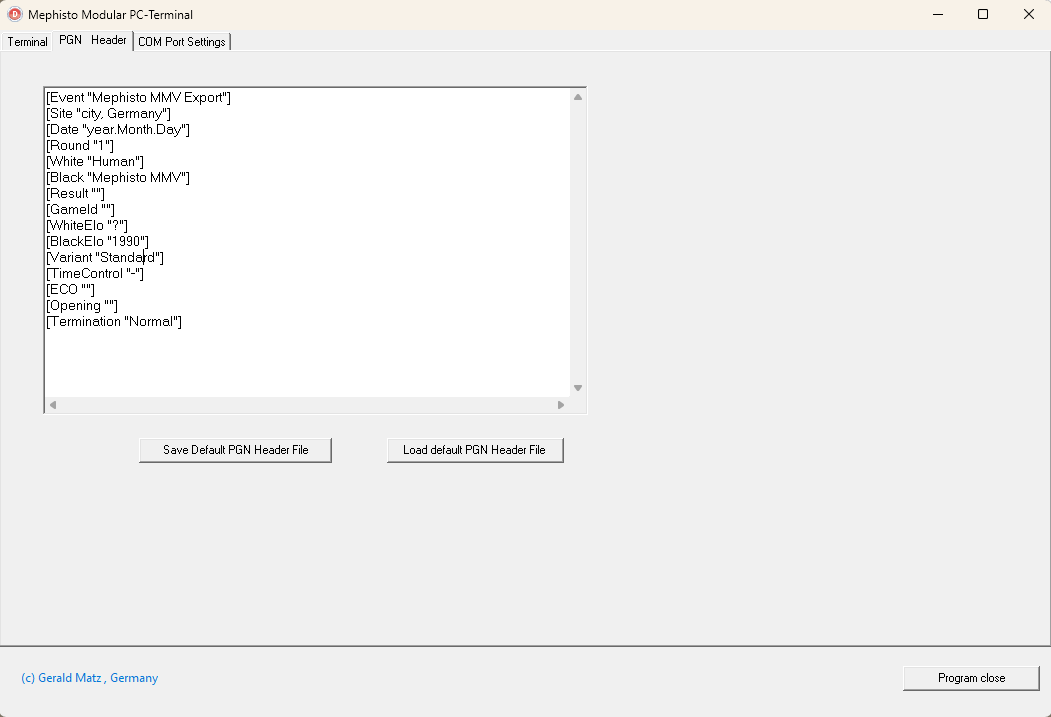 Bei den vielen Testpartien die ich prüfen musste, war mir das umherkopieren in eine PGN Vorlagendatei zu aufwendig und ich habe mir einen eigenen speziellen seriellen Monitor mit PGN Datei Speicherung in Delphi programmiert. (nur für Windows und kostet 24 € ( Brutto)! )