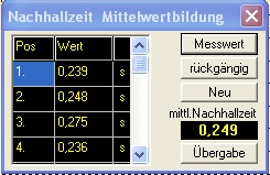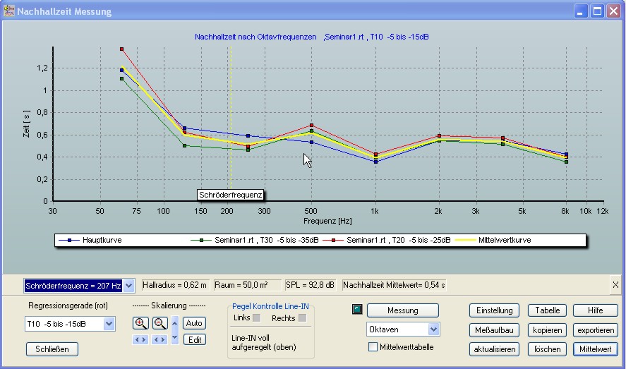 Nachhallzeit Mittelwerttabelle aus mehreren Nachhallzeitmessungen