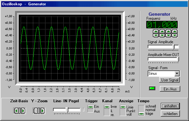 Oszilloskop erfaßt Signale von 1Hz bis 44kHz , abhängig von Soundkarte